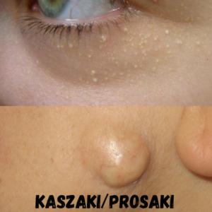 Natomiast kaszaki również występują w skupiskach. Powstają na skutek zaczopowania się gruczołu łojowego lub uszkodzenia skóry i wnikaniem w jej głąb elementów naskórka.